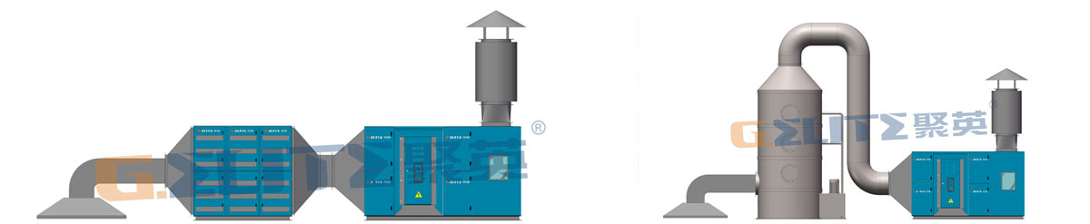 備注:以上工藝流程是廢氣綜合處理的工藝,針對不同的廢氣將采用不同處理工藝。