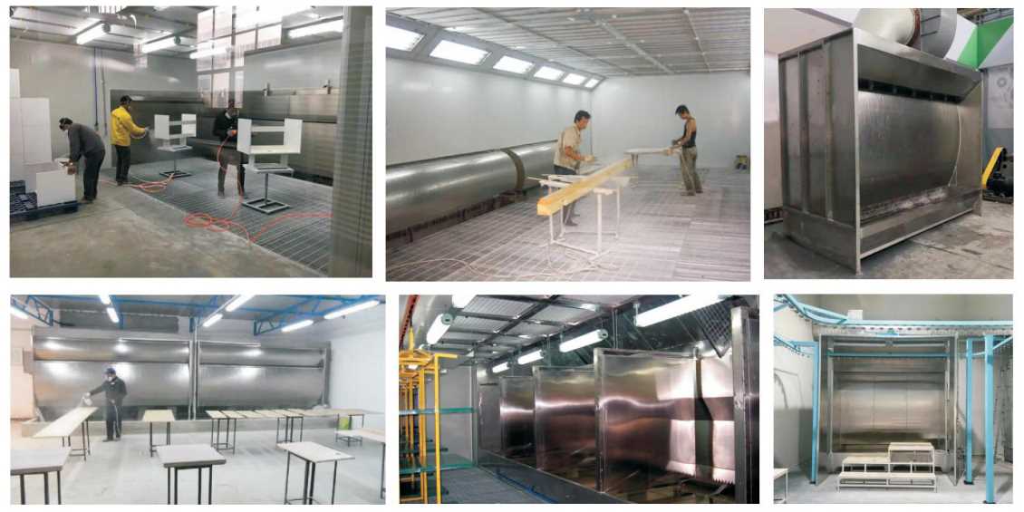 環(huán)保型水幕柜主要是由自吸水泵循環(huán)抽水往水簾板上均勻的流下來,使噴槍噴出來的漆霧和打磨產(chǎn)生的大顆粒粉塵被水簾板上的水打到下面水池里。再有少部分細(xì)微的漆霧和粉塵顆粒被末端的風(fēng)機(jī)引入高效過濾器,通過排風(fēng)管道排出車間外面或進(jìn)行高空排放。