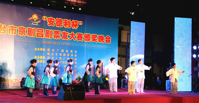 由煙臺市廣播電視臺、煙臺市戲劇家協(xié)會主辦,煙臺安德利房地產(chǎn)開發(fā)有限公司協(xié)辦的“安德利杯”煙臺市京劇呂劇票友大賽頒獎(jiǎng)晚會,于6月8日晚,在安德利文化廣場隆重舉行。出席頒獎(jiǎng)晚會現(xiàn)場的嘉賓有:煙臺市文聯(lián)主席孫光輝;煙臺廣播電視臺臺長、黨委書記王天立;山東省煙臺藝術(shù)學(xué)校校長、黨委書記王昌盛;牟平區(qū)委常委、宣傳部長王媛;山東安德利集團(tuán)董事長王安;煙臺市文聯(lián)副主席尹濤;煙臺廣播電視臺副臺長夏吉江;煙臺市呂劇院院長夏文森;牟平區(qū)文化廣電新聞出版局黨組書記、局長王旭波;山東安德利集團(tuán)副總裁、煙臺北方安德利果汁股份有限公司總裁張輝;山東安德利集團(tuán)副總裁、煙臺安德利房地產(chǎn)開發(fā)有限公司總經(jīng)理張偉。
